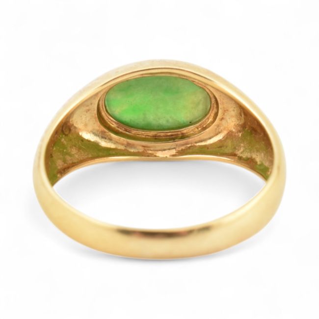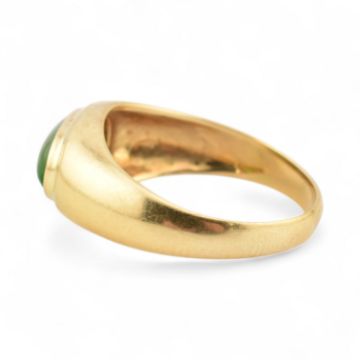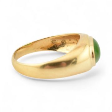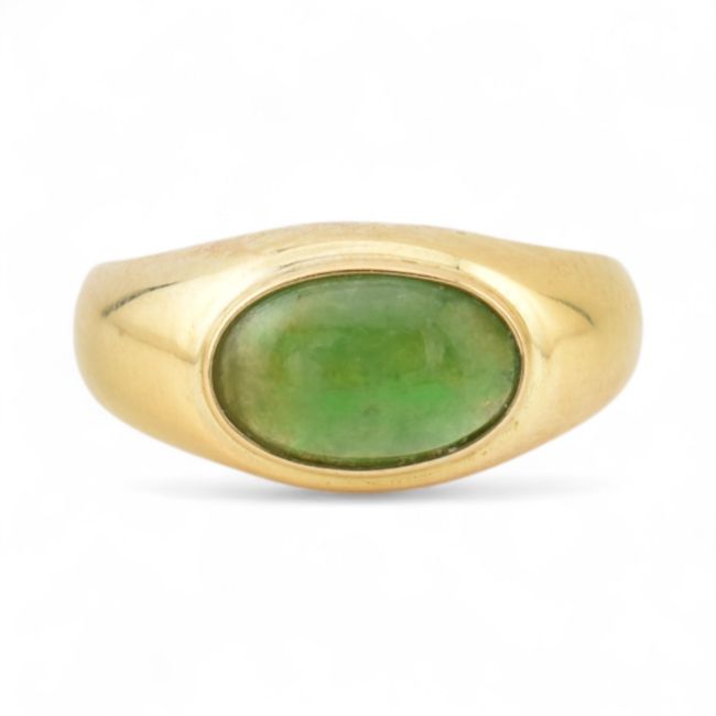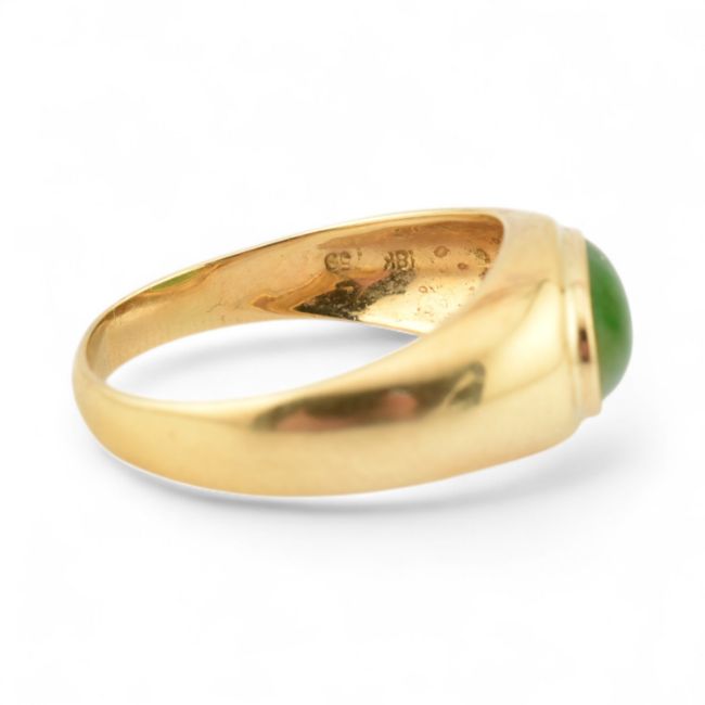 An 18ct gold and nephrite jade cabochon ring. Stamped 18k 750. Weight 4g, size N.5.