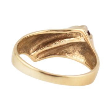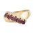 A 9ct gold and ruby set five-stone ring. Unmarked, tests indicate 9ct gold. Weight 3.6g. Size O.5.