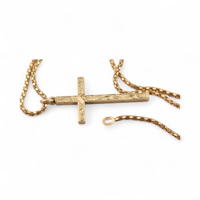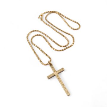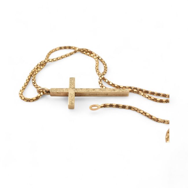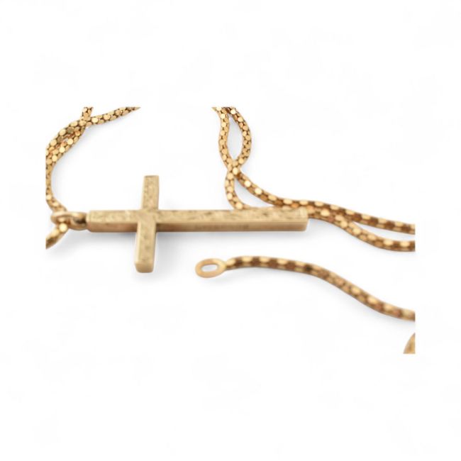 An 18ct gold necklace chain set with a 9ct gold cross pendant. Total weight 11.1g, approximate weight of cross 4.7g