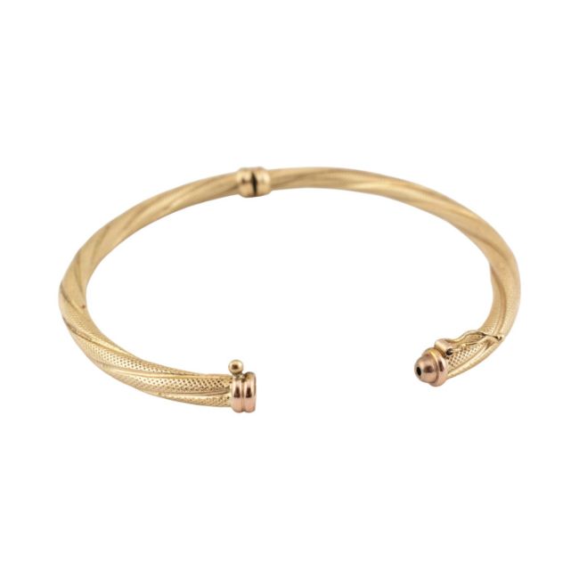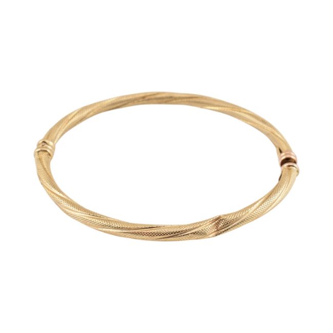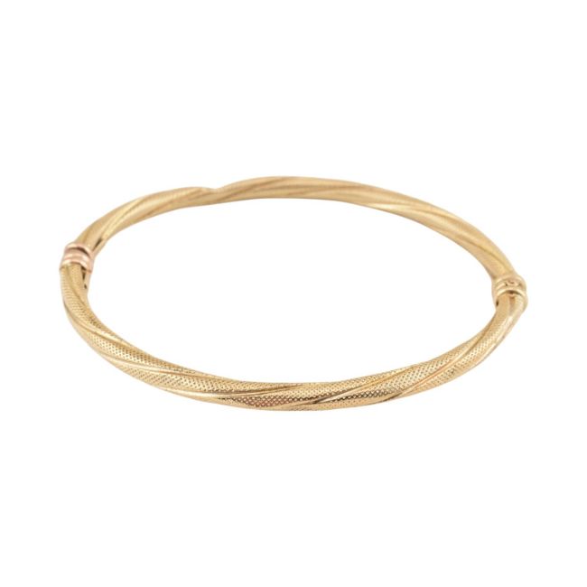 A hallmarked 9ct gold rope twist bangle with concealed clasp and safety catch. Internal diameter 6.5cm. Weight 4.5g