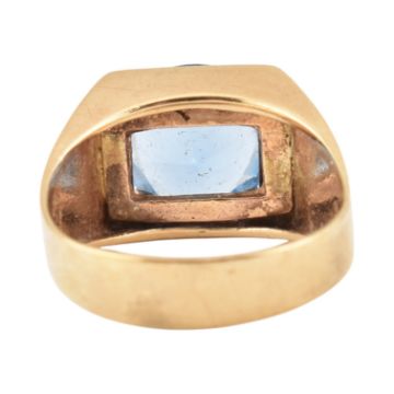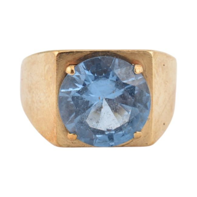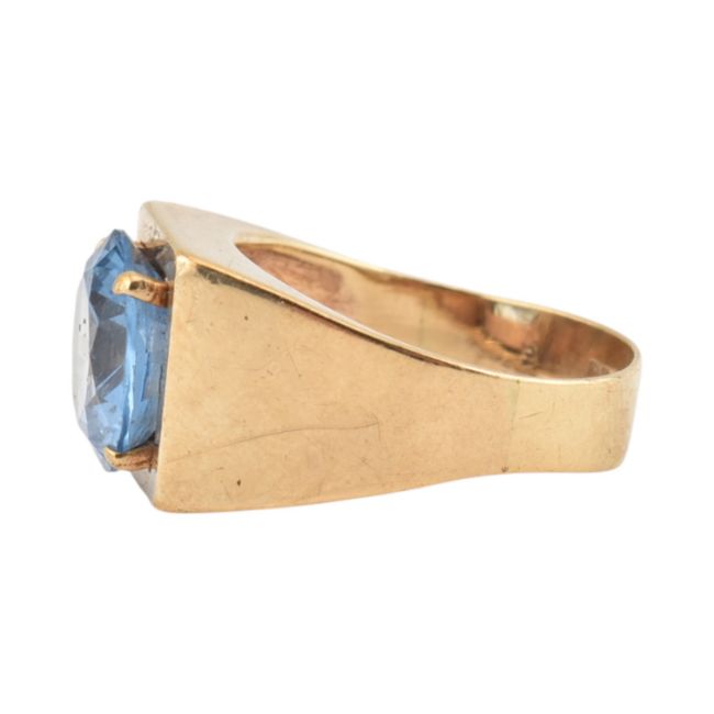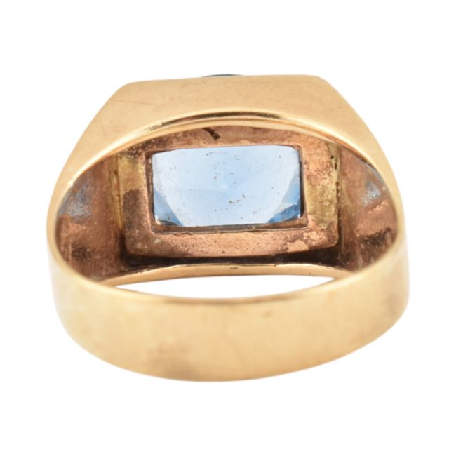 A hallmarked 9ct gold and synthetic spinel ring. Hallmarked Birmingham, sponsors mark W&G. Weight 4.8g. Size N