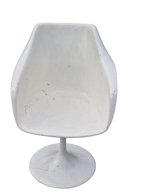 Manner of Eero Saarinen - A set of three mid Century retro Eero Saarinen style 'Tulip' chairs. The armchairs being raised on circular bases in white colourway with tub shaped frames. Measures approx: 83x56x55cm