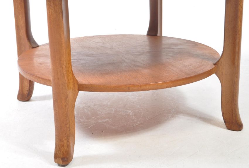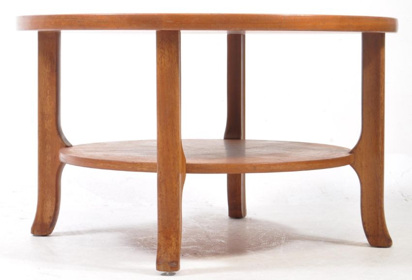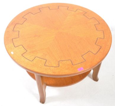 Nathan Furniture - A vintage mid 20th century circa 1970's teak coffee table. The table of circular form having carved lined cartwheel / cog design to the top and raised on shaped supports united with undertier. Measures approx: 52x86cm