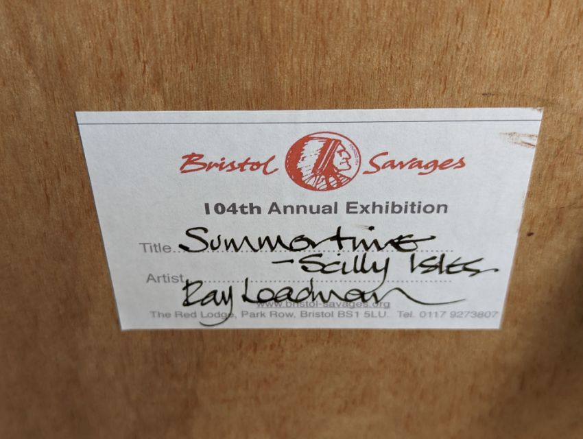 Ray Loadman (Bristol Savages) - 21st century contemporary seascape oil painting on board titled 'Summertime - Scilly Isles' from the 104th annual exhibition of the Bristol Savages. Artist signature to the bottom right corner. Framed and mounted, measuring approx. 68cm x 81cm. With paperwork to the reverse.