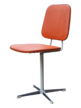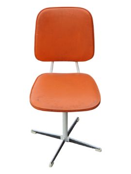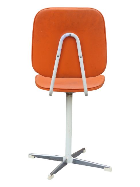 Manner of Tansad Furniture - A 1970s retro / mid century design office chrome swivel chair. Raised on a four point base with swivel overstuffed orange fabric seat and back rest. Measures approx: 81x37x45cm