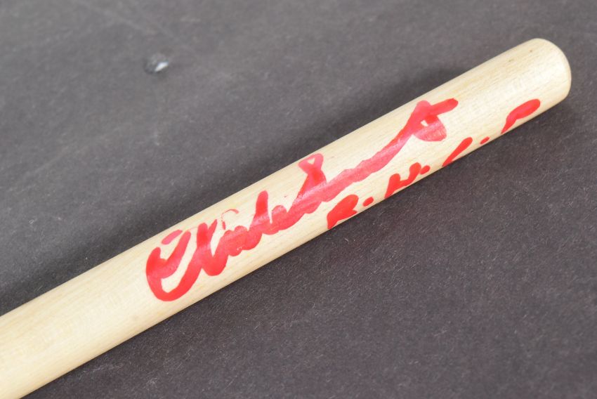 Chad Smith (American musician - drummer in Red Hot Chili Peppers) - autographed drum stick, signed in red ink to the end. Smith adding 'RHCP' underneath. Undedicated. 40cm.