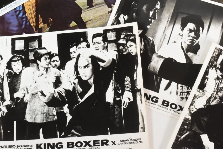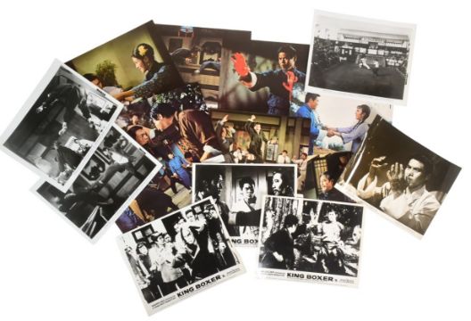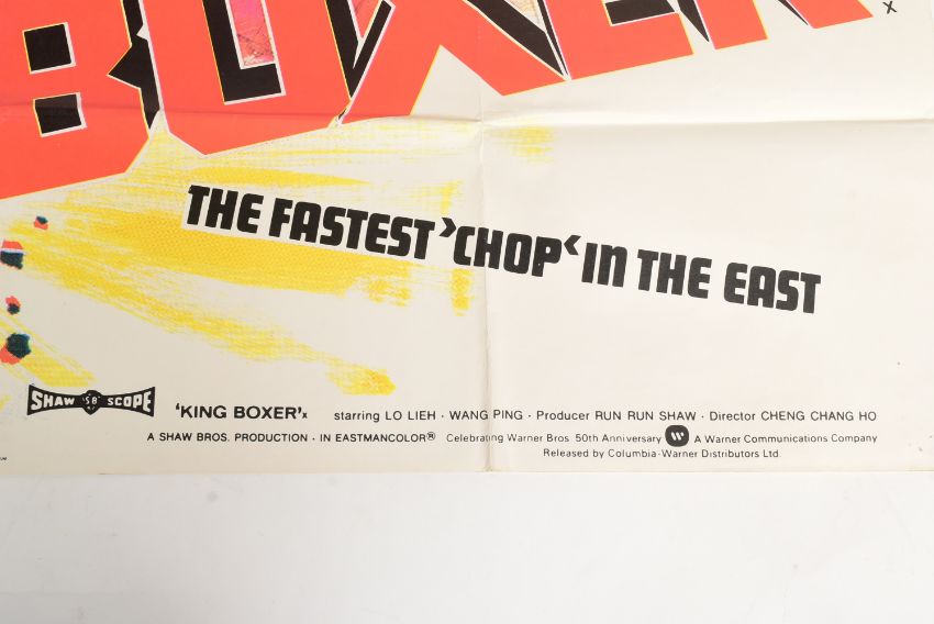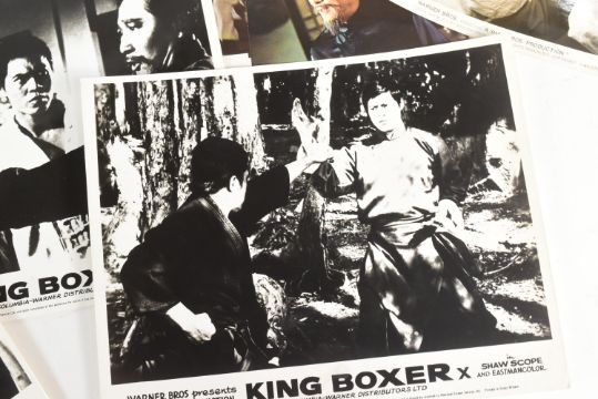 King Boxer AKA Five Fingers of Death (1972 Hong Kong martial arts film produced by Shaw Brothers Studio, directed by Jeong Chang-hwa, starring Lo Lieh) - an original British quad cinema poster printed by Wallman & Co Ltd. Folded, as issued, but generally G+ to VG condition. Along with a full set of x8 British colour 8x10" lobby cards, and a selection of part-sets of other lobby cards.