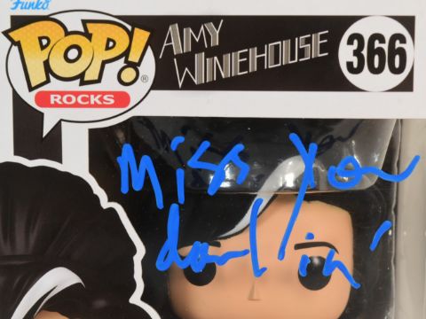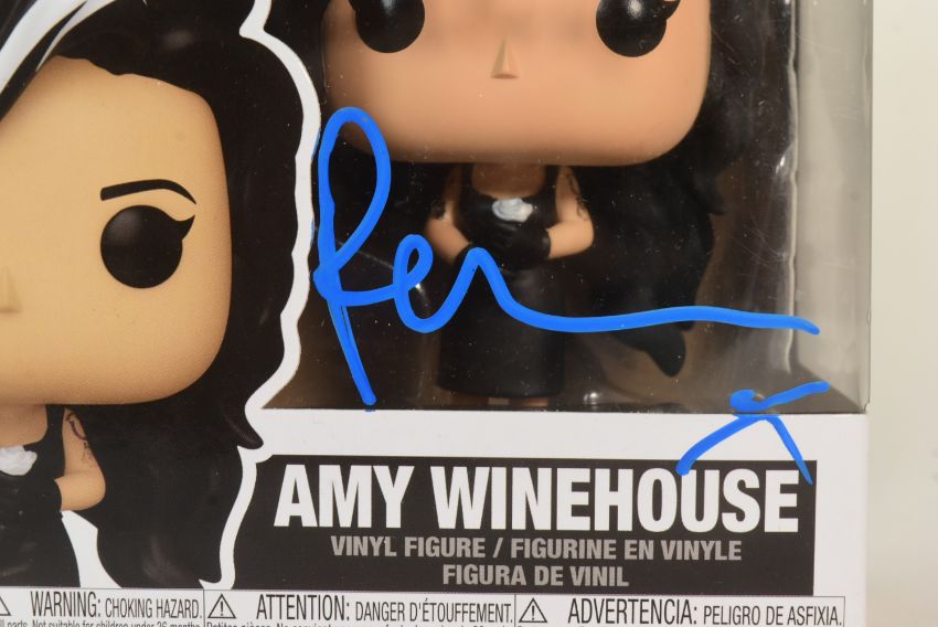 Pete Doherty (English musician, The Libertines etc) - autographed Amy Winehouse Funko Pop vinyl action figure. Signed to the front window in blue ink, with inscription 'Miss you darlin''. Mint. Obtained in person by the vendor.