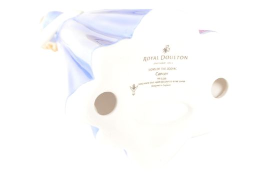 Royal Doulton - Five 21st century Signs of the Zodiac handmade and hand-decorated bone china figures. Comprised of Cancer HN 5339, Virgo HN 5345, Aries HN 5346, Cancer HN 5339, and Aries HN 5346. All housed within their original boxes. Figures measuring approx. 17.5cm tall.