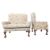 A vintage 20th century Queen Anne style armchair with two seater sofa / settee. Raised on ball and claw feet with carved detail and floral upholstery. Measures approx: 107x123x73cm