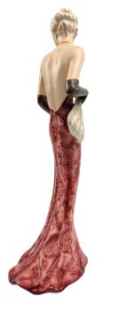 Josef Lorenzl for Goldscheider - an Art Deco c1941 hand painted porcelain Abendkleid cabinet figurine of a lady. The model depicted in pink lace dress, holding a feathered fan. Designed in around 1937, executed by Wiener Manufaktur Goldscheider c. 1941. Impressed model no. 7224 63 19 to underside, & stamped Made in Austria.