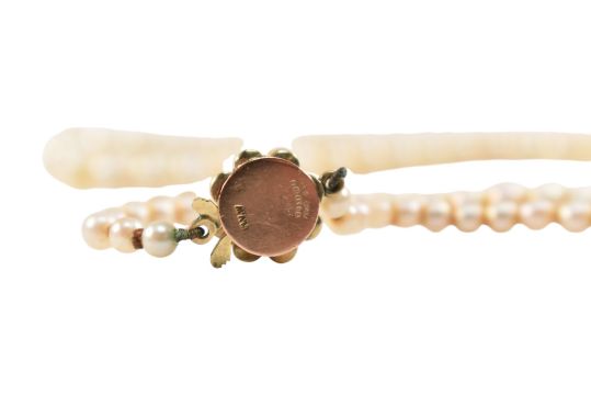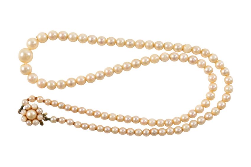 A hallmarked 9ct gold & pearl necklace. The graduating pearl necklace with cluster pearl and 9ct gold clasp. Hallmarked Birmingham. Weight 14.5g. Length 45cm approx