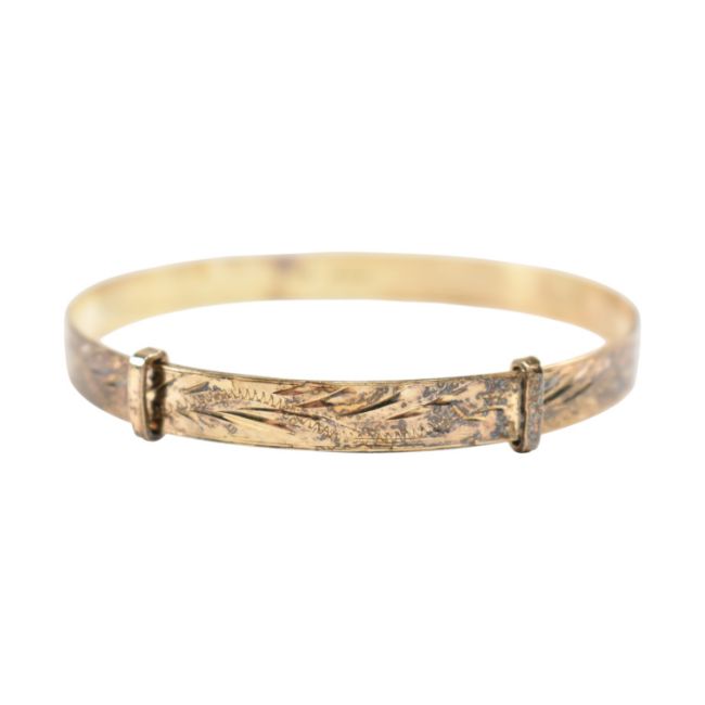 A hallmarked silver gilt bangle. The bangle is hallmarked Birmingham 1995. Albert Jackson. Weight 8.4g. Measures 7cm maximum diameter.