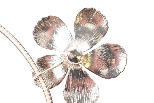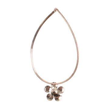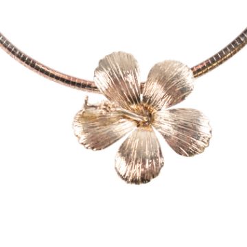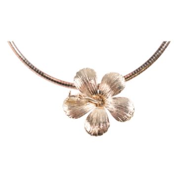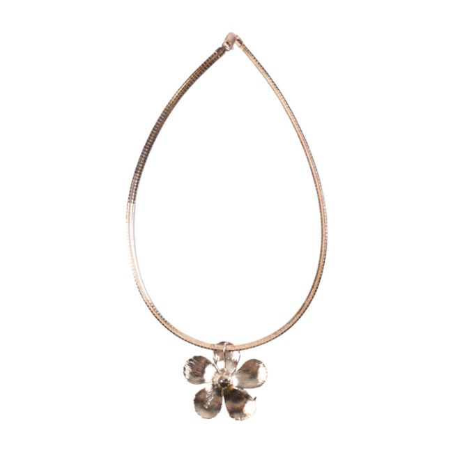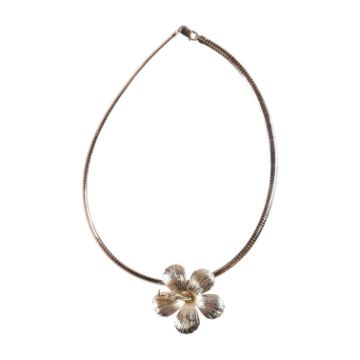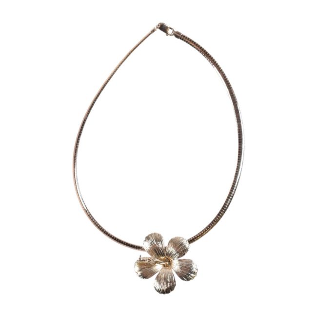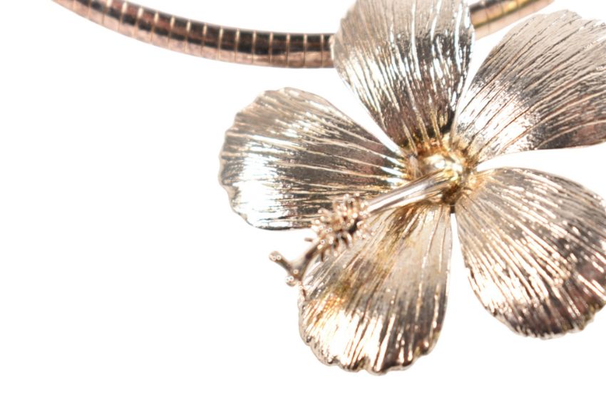 A 925 silver hibiscus flower pendant necklace. The necklace is strung with a statement hibiscus flower pendant. Stamped 925 with maker's mark to pendant, 925 and Italy to chain. Measures 40cm, pendant 4cm.