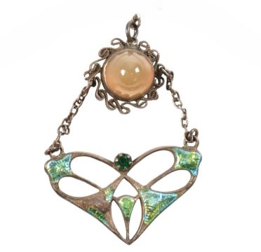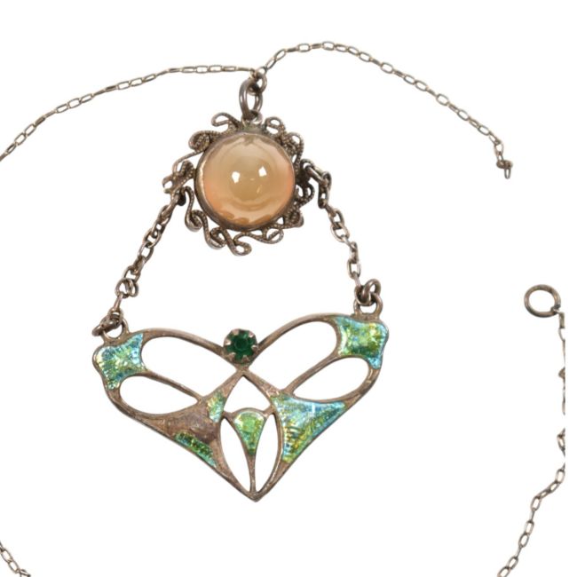 An Arts & Crafts Charles Horner silver and enamel set pendant and necklace AF. Hallmarked Chester, makers mark CH. Weight 5.4g. Measures chain 24cm approx