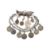 A collection of Bedouin jewellery to include a white metal necklace strung with late 19th century and early 20th century north African Francs. A Fatima's hand pendant set with coral. A prayer amulet pendant with coral coin and hand pendants. Tests indicate evidence of silver likely 800 in parts. Total weight 109g