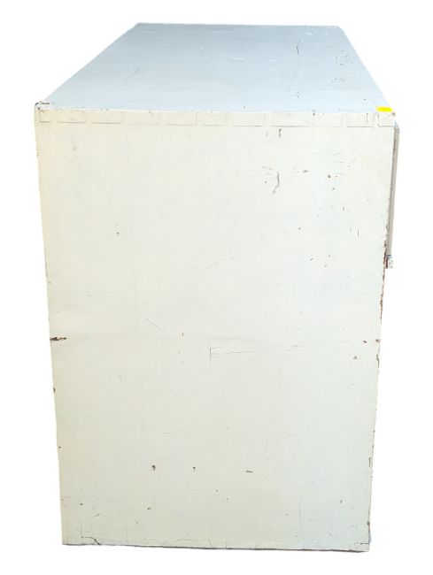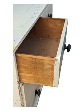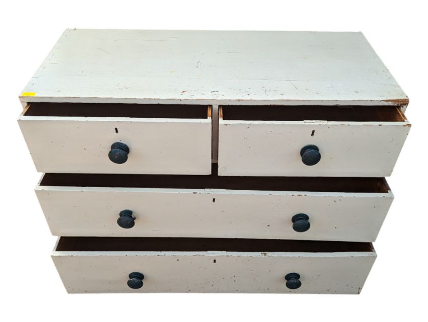 19th century Victorian painted white chest of drawers. Features a rectangular body with two over two drawers, each with round knob handles and a keyhole. Measures approx: 79x118x53cm
