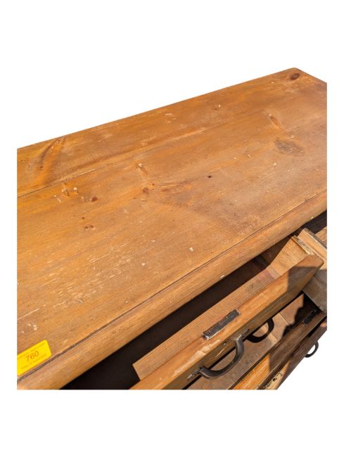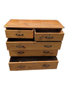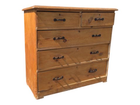 A Victorian 19th century country pine chest of drawers. Featuring a rectangular top with two over three drawers. Each drawer with later metal pull handles. Measures approx: 92x103x44cm