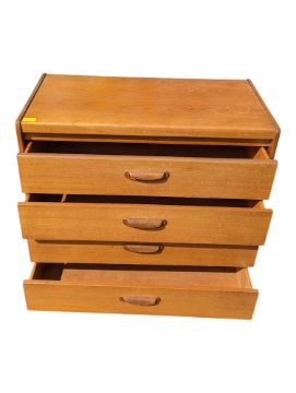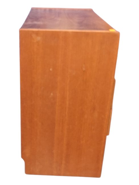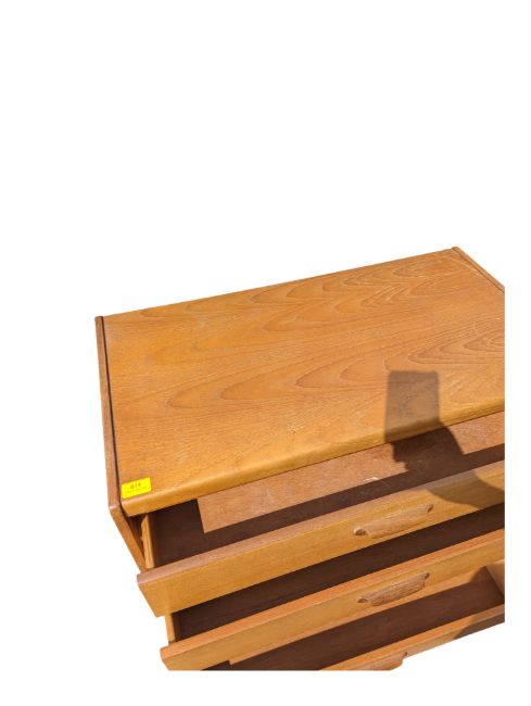 William Lawrence Furniture - A retro teak mid century chest of drawers. The chest of drawers with four drawers with lipped pull handles raised on a plinth base. Measures approx: 73x79x41cm