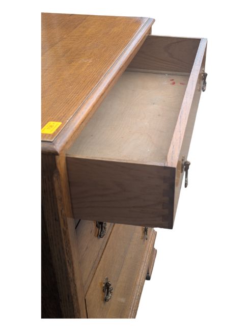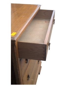 Early 20th century oak chest of drawers. Rectangular form with a bank of four full length drawers. Raised on bracket feet and metal droplet pull handles. Measures approx: 96x76x44cm