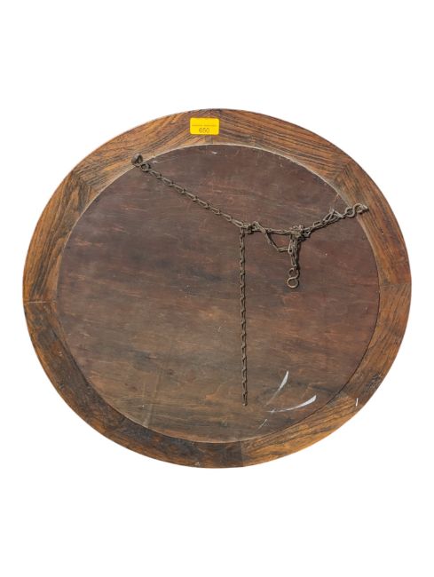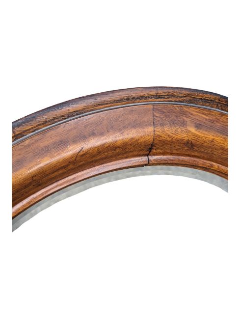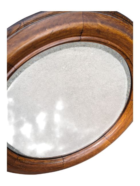 A 19th century Victorian mahogany bevelled edge porthole / roundel wall mirror. Of roundel form featuring a beveled circular mirror to centre within a circular cushion mahogany frame. Measures approx: 55cm