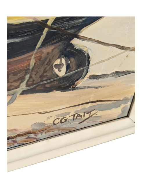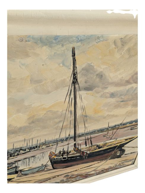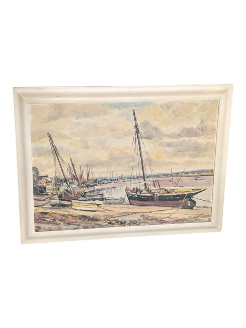 Charles Grigg Tait (1915-1995) - 20th century oil on canvas painting depicting a harbourside landscape of boats / yachts at low tide. Signed by the artist to the bottom right corner. Framed. Measures approx: 61x80cm