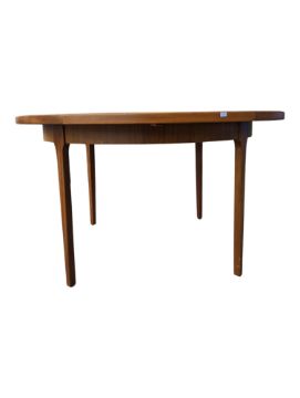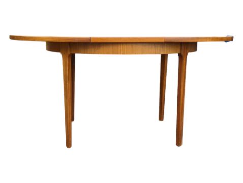 Manner of G-Plan Furniture - A mid 20th century teak extending circular dining table. Of circular form raised on four rectangular tapering legs. Circular top with extending action to centre. Measures approx: 74x159x114cm