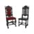 Two 19th century Victorian Gothic revival carved high back hall / dining chairs. One chair having red upholstered overstuffed seat and central splat, featuring carved pierced surround to backrest and lions head carved legs. The other having barley twist turned stretchers to lower with carved floral panel seat and pierced backrest with barley twist columns flanked central oak leaf carved splat. Measures approx: 113x47x45cm