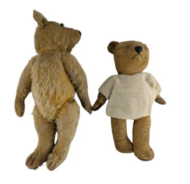 Two early 20th century vintage teddy bears. Each with plastic eyes.