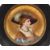 A believed Limoges, France 19th-century hand-painted porcelain wall plaque portrait. The portrait depicting a lady in profile with extravagant hat, bejewelled necklace and dress on a gilt ground. The painted plate framed in a gilt & ebonised circular wooden frame. The plate stamped 110 to underside.