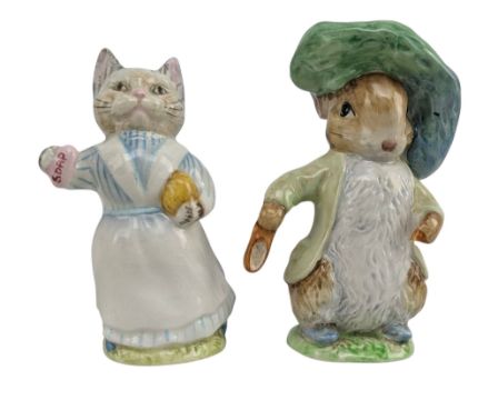 Beswick Porcelain - Beatrix Potter - F. Warne & Co - a set of fifteen 20th century hand painted porcelain animal figurines of Beatrix Potter's characters. The lot to include Tommy Brock (gold stamp), Ribby (lilac stamp), Tom Kitten (gold stamp), Pigling Bland (gold stamp), Benjamin Bunny (gold stamp), Mrs Rabbit (gold stamp), Squirrel Nutkin (gold stamp), Mrs Tiggy WInkle (gold stamp), Tabitha Twitchit (gold stamp), Hunca Munca (gold stamp), Samuel WHiskers (gold stamp), Mrs Tittlemouse (gold stamp), Little Pig Robinson (gold stamp), FOxy Whiskered Gentlemen (gold stamp) (small chip to ear), together with Pig-Wig figurine. All stamped to underside. (15)