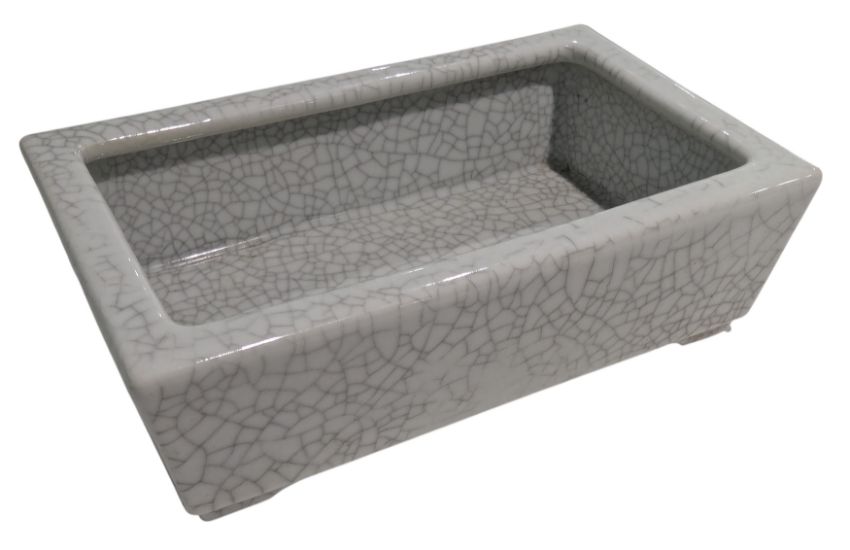 A 20th centry Chinese Ge type crackle glazed shuixianpan planter. The rectangular planter has a pale greyish green glazed to both interior and exterior, raised on four feet.