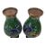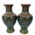 A pair of 20th century Chinese bronze based cloisonne enameled vases. Each green ground blauster shaped vase decorated with polychrome enameled floral and foliate motifs to the neck, lappets to the shoulder and two dragons chasing a flaming pearl to the body. Raised on a short foot. Weight approx. 1085g.