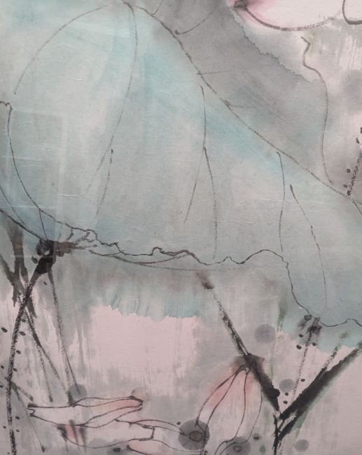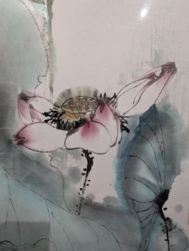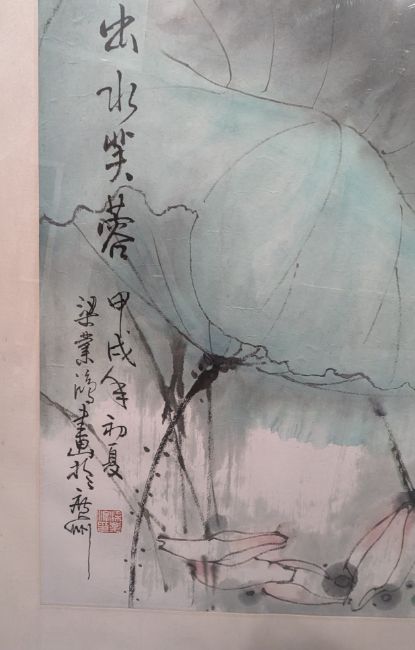 A 20th century Chinese ink & colour on paper painting depicts lotus. Signed and dated.