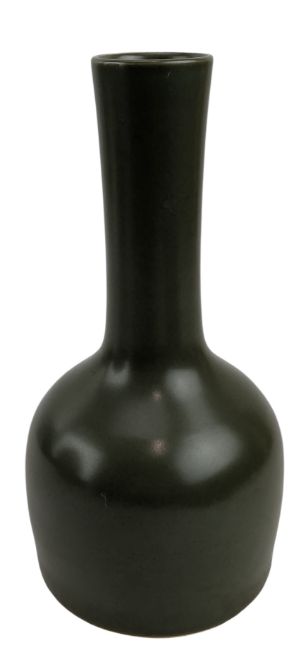 An early 20th century late Qing dynasty or later teadust glazed porcelain vase. The mallet shaped vase potted with a tall, gently flaring neck rising from broad, globular body towards the foot. Six character 'Daqing Kangxi Nian Zhi' mark to the base with two blue rings.