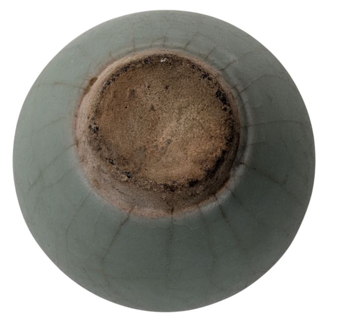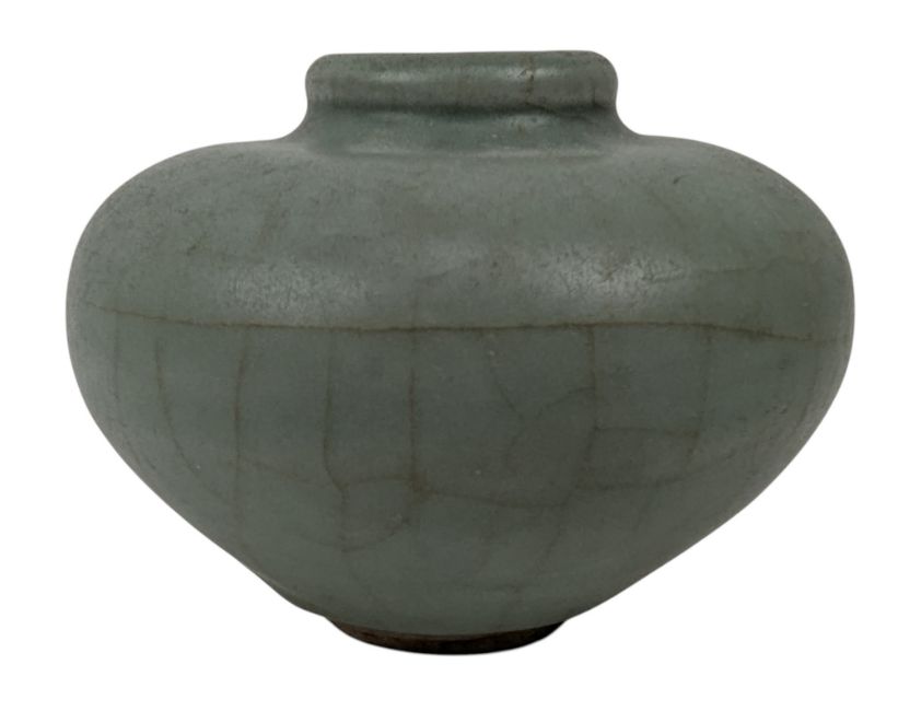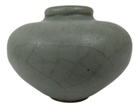 Ming Longquan celadon oil jarlet with wide shoulders. The sides tapering sharply to the narrow foot. Unlaged to the base.