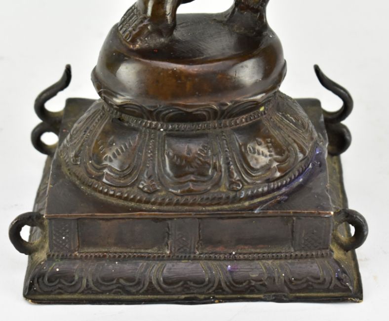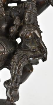 A 19th century heavy cast bronze figure of Mahaganapati, the deity standing on a lotus place on a rectangular base, embracing his spouse seated on his left leg. Weight approx. 5500g.