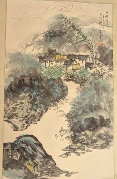 Zhou Chunlei - Ink & colour on xuan paper scroll painting depicting landscape.