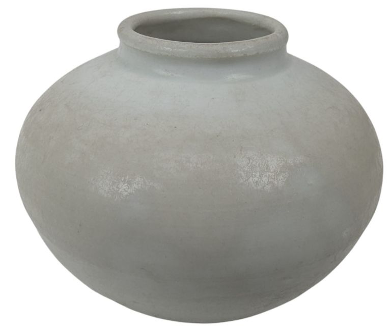 A Ming Dynasty white glazed porcelain jar. The jar of depressed Ruan form. Covered with cream white glaze. Unglazed to the base.