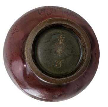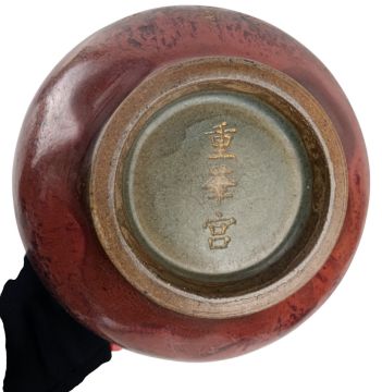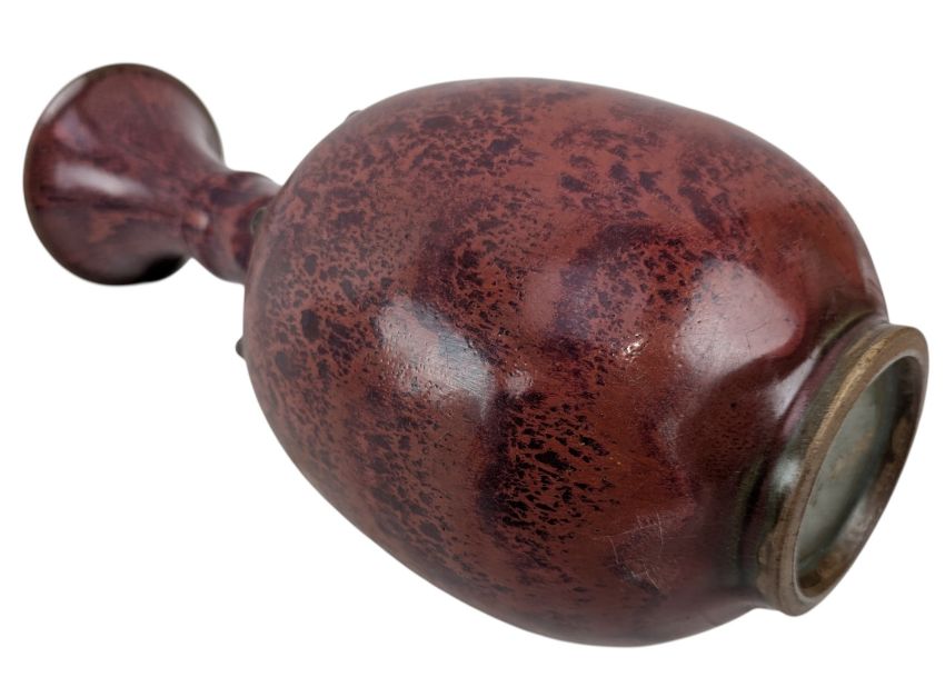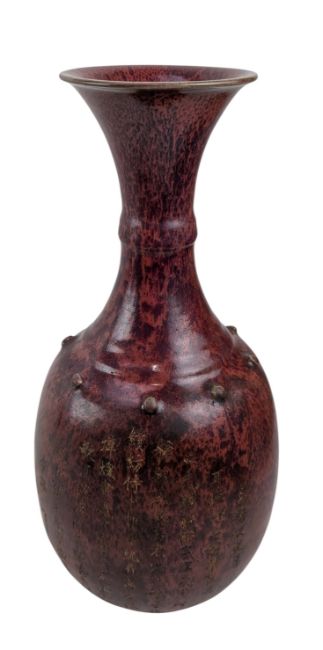 A Chinese flambe yunyao ceramic vase with gilt inscription. The baluster shaped vase having a flared mouth rim, studs decoration to the shoulder, gilt inscription to the body. Marked '重华宫(The Palace of Double Glory)' to the base.