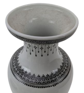 A 20th century baluster shaped famille rose porcelain vases depict a snowscape, figurine, pine trees and houses. Four character 'Qianlong Nian Zhi' marked to the base.
