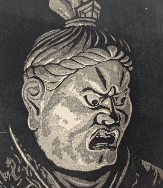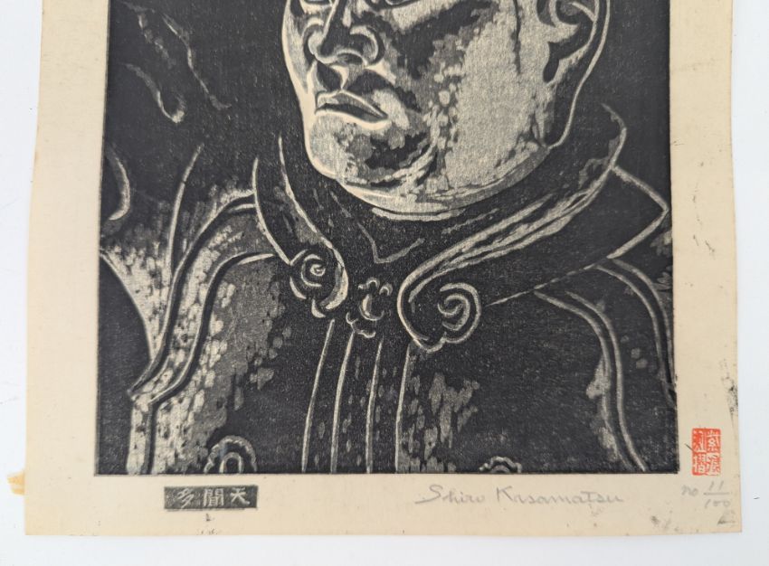 Shiro Kasamatsu 笠松 紫浪 (Japanese 1898-1991) - two original woodblock prints. The lot to include a woodblock print image of Tamonten 多闻天. Limited edition no. 11/100. Signed. Together with a woodblock print image of Zochoten 增长天. Limited edition no 20/100. Signed.