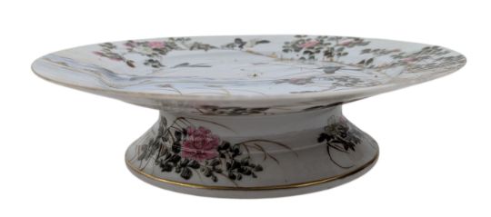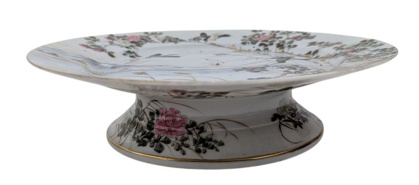 Two Japanese Meiji period ceramic pieces. The lot to include a Meiji period export porcelain stem cake dish. Marked '日本横滨 井村造 - Japan Yokohama Imura made‘ to the base. Together with a 19th century Imari porcelain plate.