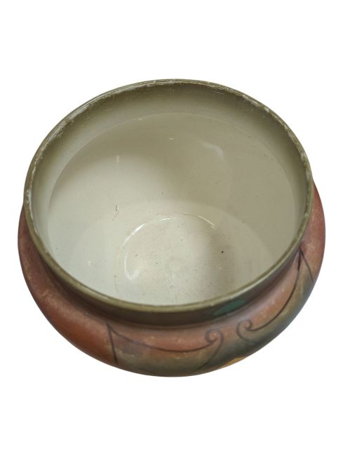 An early 20th century Art Nouveau ceramic planter. The planter of rounded form, with lustre glaze and inverted spade design. Decorated in shades of orange and green.