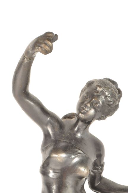 A pair of 19th century Victorian bronze classical figurines of a lady. Raised on alabaster socle plinth bases. AF