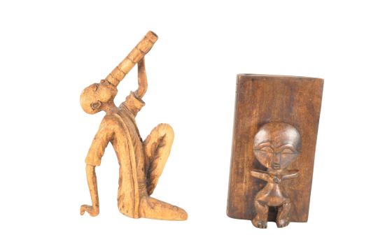 Collection of 20th century African ornamental hardwood and other carvings. Featuring portrait busts, figures, and three horn carved heron figures. Largest piece measuring approx. 31cm tall.