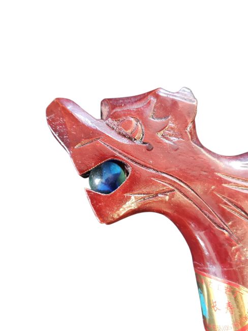 A collection of 20th century dragon headed walking sticks/canes. A variety of styles and decorative design. All include either a glass or wooden marble encased in the mouth. Three with rubber stoppers to the bottom.