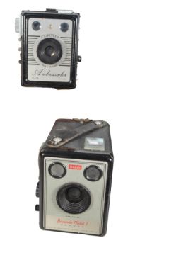 A collection of vintage mid 20th century cameras. The collection to include a Chinon Master, Kodak Instamatic 233, a Braun Paxette, a Halina Paulette Electric, amongst other examples.