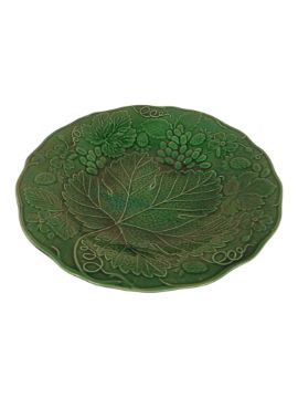 Collection of 19th century porcelain and earthenware pieces. Comprised of a New Hall bowl in the yellow shell pattern, a Capodimonte Ginori twin handled cup decorated in relief figures, a believed to be Machin and Co green floral patterned plate, and a majolica green foliate patterned plate. Makers marks and stamps to the base of each piece. Largest piece measuring approx. 23cm in diameter.