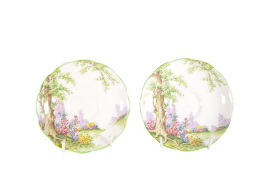 Royal Albert - A vintage 20th century Royal Albert for Lawleys of Regent Street bone china coffee service. The service consisting of a series of cups, a tall milk jug, coffee pot, saucers, and twin handled sugar pot. Each having white ground with floral spray decoration and green details.